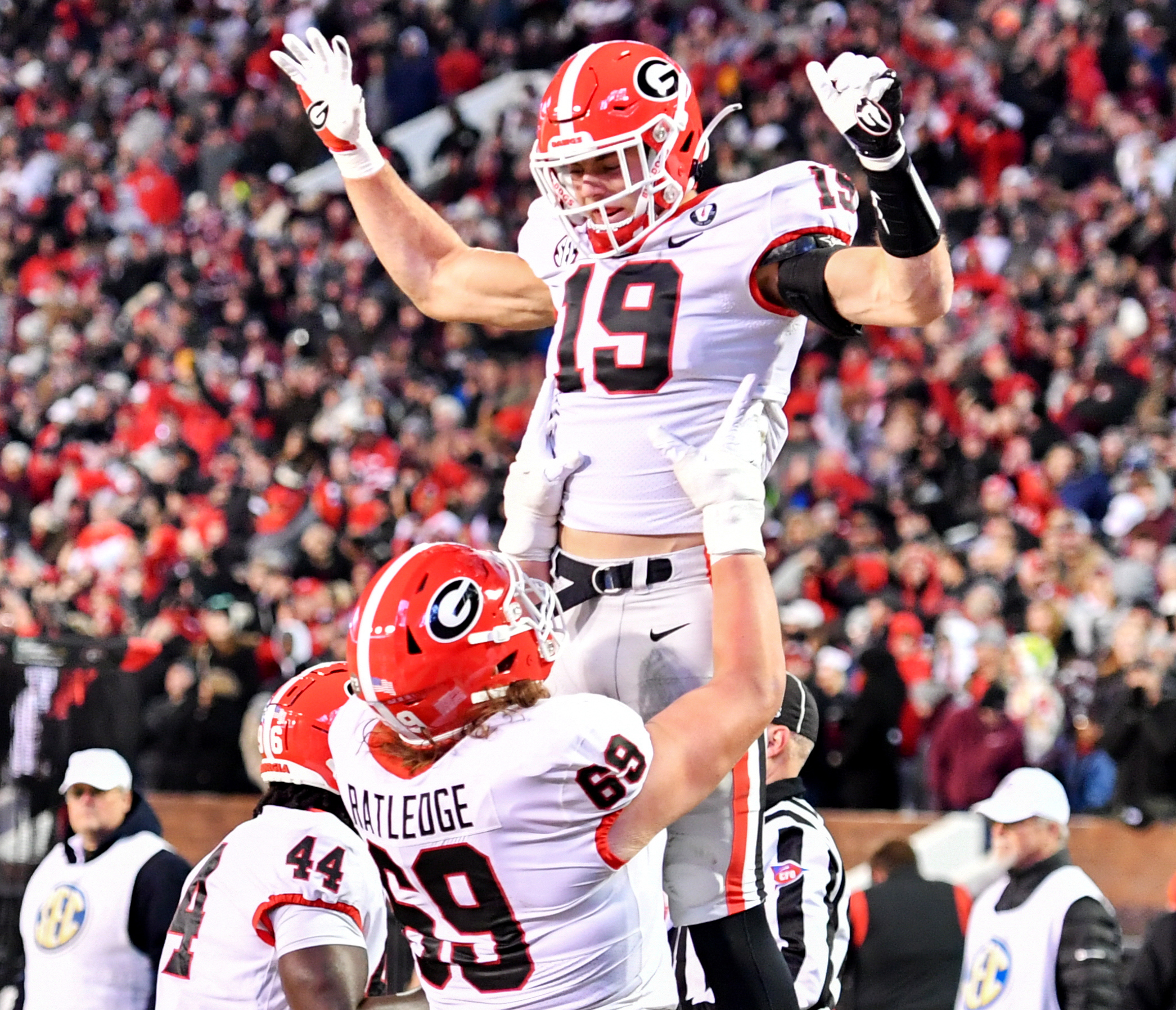 3. 2022 – It was a frigid night in Starkville, and top-ranked, 9-0, reigning national champion Georgia was on upset alert. Mississippi State was talented and hungry for a huge win under the watch of the Pirate, Mike Leach, who soon after sadly passed away. Stetson Bennett, Brock Bowers and Ladd McConkey highlighted a 45-19 victory. State returned a punt for a touchdown on the final play of the first half – Georgia stymied the two-pointer – and it was 17-12 Georgia at intermission. The Dawgs struck on the first possession of the second half, as McConkey went 70 yards on a reverse to create some distance. State would get no closer the rest of the night. The victory clinched the SEC East title, as Georgia made it 10-0 en route to a perfect 15-0 campaign and second straight national championship.